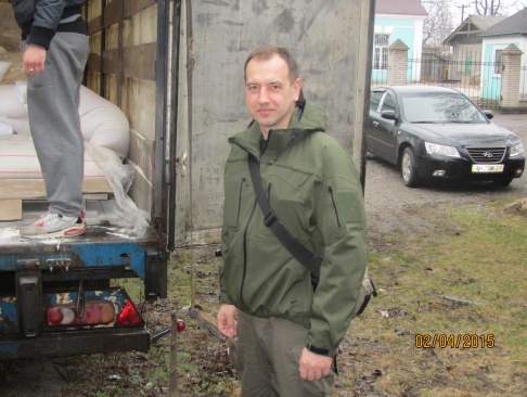 Машина с гуманитарным грузом от партии "РОДИНА" прибыла в Донбасс утром 2 апреля. На границе её встречал член Президиума, руководитель Исполкома партии Евгений Ивлев.