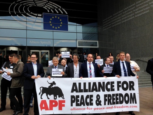 Напомним, в июне 2015 года в Брюсселе была запланирована совместная пресс-конференция представителей европейской партии "Альянс за мир и свободу" (Alliance for Peace and Freedom – APF) и российской партии "РОДИНА", посвященная вопросам мира и сотрудничества между ЕС и РФ и прекращению новой холодной войны.