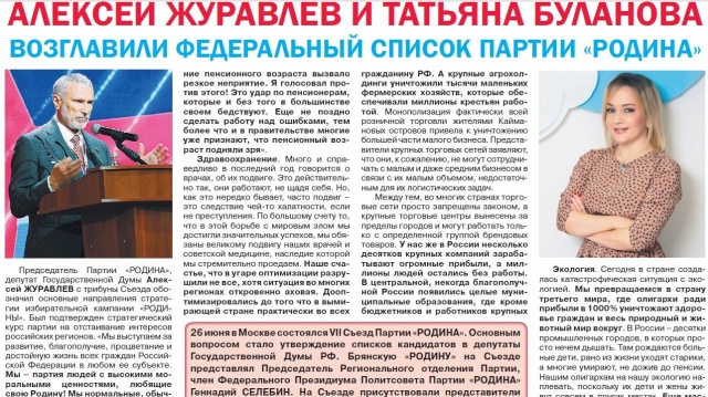 В июльском выпуске газеты "Голос РОДИНЫ. Брянск" (электронная версия газеты: "Голос РОДИНЫ. Брянск") опубликованы материалы о выдвижении Партией «РОДИНА» кандидатов в депутаты Государственной Думы России.