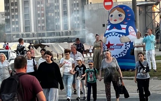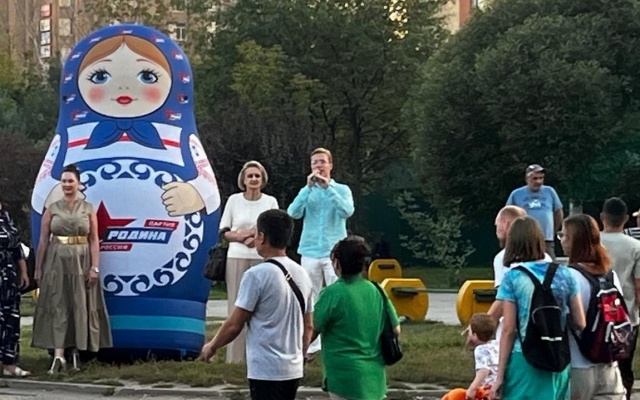 Матрёшка "РОДИНЫ" и кандидаты в депутаты работают в подмосковном Щелково.