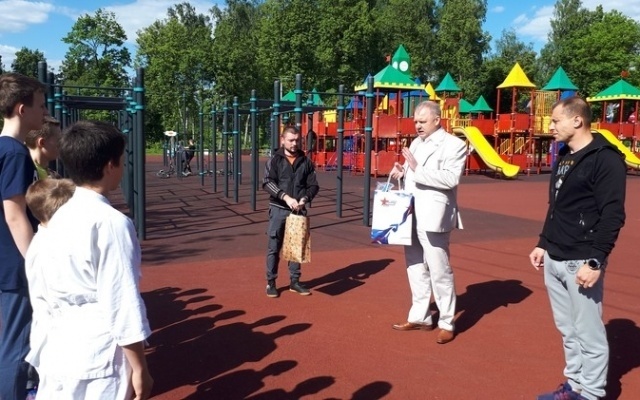После тренировки Владимир Борисович поздравил ребят с прошедшим Днем защиты детей и вручил подарки – спортивную экипировку, необходимую для занятий рукопашным боем.