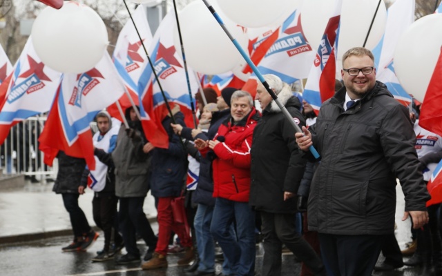 Шествие прошло по Тверской улице в сторону Манежной площади, где состоялся праздничный митинг-концерт "Мы едины".
