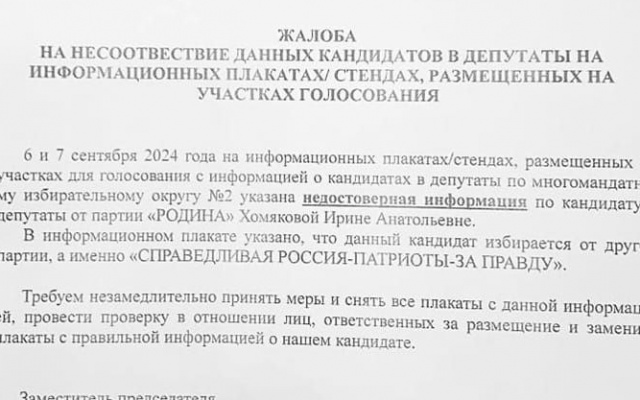 Так, в городе Щелково выявлена провокация против нашего кандидата. На информационных стендах кандидат от партии "РОДИНА " на всех участках для голосования во 2 округе был подписан, как кандидат от другой партии. Составлены жалобы, идёт проверка.