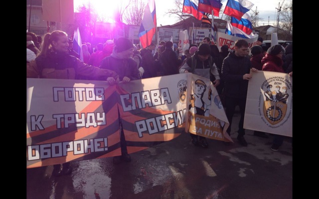 Мероприятие, в котором приняли участие десятки российских общественных и политических организаций, состоялось в поддержку воссоединения Крыма и Севастополя с Российской Федерацией.