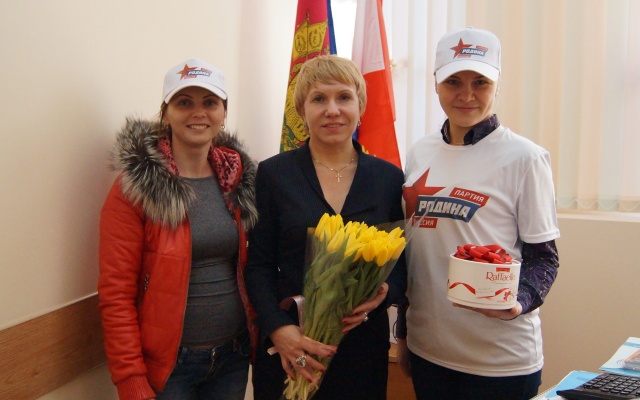Сочинские активисты Общественной приемной партии "РОДИНА" поздравили с 8 Марта работниц сочинского Избиркома.
