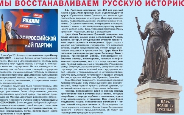 На первой полосе газеты публикуется материал о Дискуссионном клубе Брянской «РОДИНЫ», спикером которого является кандидат наук, психолог, доцент БГУ Ольга Малькина. По рассматриваемым темам и вопросам по истории России Председатель Брянской «РОДИНЫ» Геннадий Селебин отметил: «В течение отдельных периодов нашей истории проводилась политика, которая ставила под сомнение нашу веру в себя, в свою историю и традиционные ценности. Либеральный курс продолжается и сегодня. Самым большим и охраняемым секретом России является ее реальная история. От исхода борьбы между патриотами и либералами зависит судьба государства, свобода и независимость нашей Родины. Михаил Ломоносов в своем научном труде об истории славян отмечал: «Народ, не знающий своего прошлого, не имеет будущего". Магистральный путь нашей истории - это Сибирское направление.  Если народ лишен памяти и не понимает, кто он и откуда, то ничего хорошего не будет. Возрождение России - это возврат к собственным корням, а не использование чужеземных конструкций".