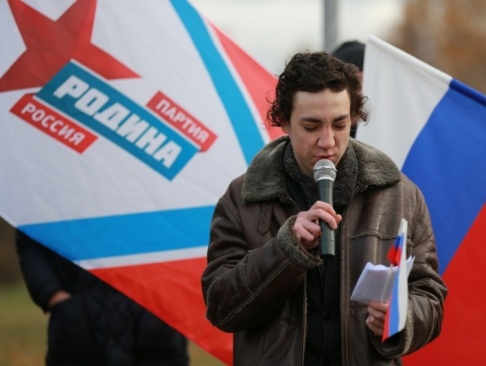 Участники мероприятия подошли к подножию памятника с государственными флагами России и партии "РОДИНА". Ведущий клуба "Родина на Неве" Дмитрий Жвания выступил со вступительной речью: