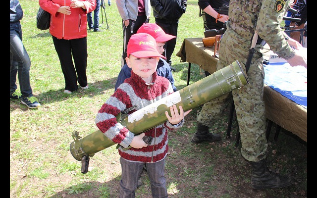 Не меньше радости доставила ребятам выставка стрелкового оружия. Причем оружие разрешили не только смотреть, но и брать в руки и даже фотографироваться. Где еще можно подержать в руках настоящий пулемёт или гранатомет. Выставка вызвала ажиотаж не только у мальчишек и девчонок. С интересом разглядывали оружие папы, мамы и даже бабушки.