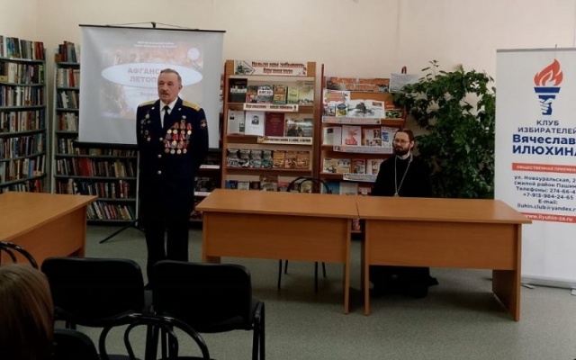 Встреча школьников с депутатом Совета города Новосибирска от партии "РОДИНА" и ветераном боевых действий в Афганистане Леонидом Рыбиным состоялась в читальном зале библиотеки им. М. Горького.