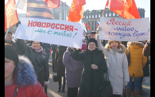 Виктор Диц, член партии, председатель Национально-культурной автономии немцев в Татарстане, тоже поздравил митингующих с праздником и обратил внимание на то, что сегодня вступают в должность избранная 2 ноября власть в Новороссии, поэтому этот день можно также считать днем рождения нового государства - Новороссии.