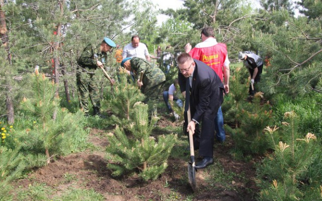 Справка: Для реализации акции казанским отделением ВПП "РОДИНА" был закуплен посадочный материал - 30 сосен из базисного Лесного питомника.