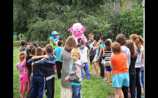 Ребятня была в восторге от ростовой куклы, пришедшей на праздник, дети с удовольствием принимали участие в "Весёлых стартах".