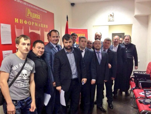 Участники слушаний в Социально-патриотическом Клубе "СТАЛИНГРАД" 24 апреля 2014 г.: сопредседатели, члены Президиума Политсовета партии "РОДИНА" Алексей Рылеев и Фёдор Бирюков; председатель регионального отделения партии "РОДИНА" в Саратовской области Олег Игушкин; президент всемирной сербской диаспоры Драган Станоевич; председатель правительства Донецкой народной республики Денис Пушилин; председатель Главного совета украинской патриотической молодежной организации "Славянская гвардия" Владимир Рогов; завотделом Института по связям с РПЦ и православным сообществом Института Стран СНГ Кирилл Фролов; председатель Союза Православных Граждан Украины, полномочный представитель созданной в Одессе республики Новороссия Валерий Кауров; премьер-министр временного правительства Подкарпатской Руси Пётр Гецко; режиссер-документалист и публицист Роман Газенко; депутат Госдумы Дмитрий Коньков; активист столичного отделения партии "РОДИНА", один из организаторов сбора гуманитарной помощи Новороссии Дмитрий Дробничев; президент Центра "Кремлёвская стратегия" Вадим Мингалев и другие.